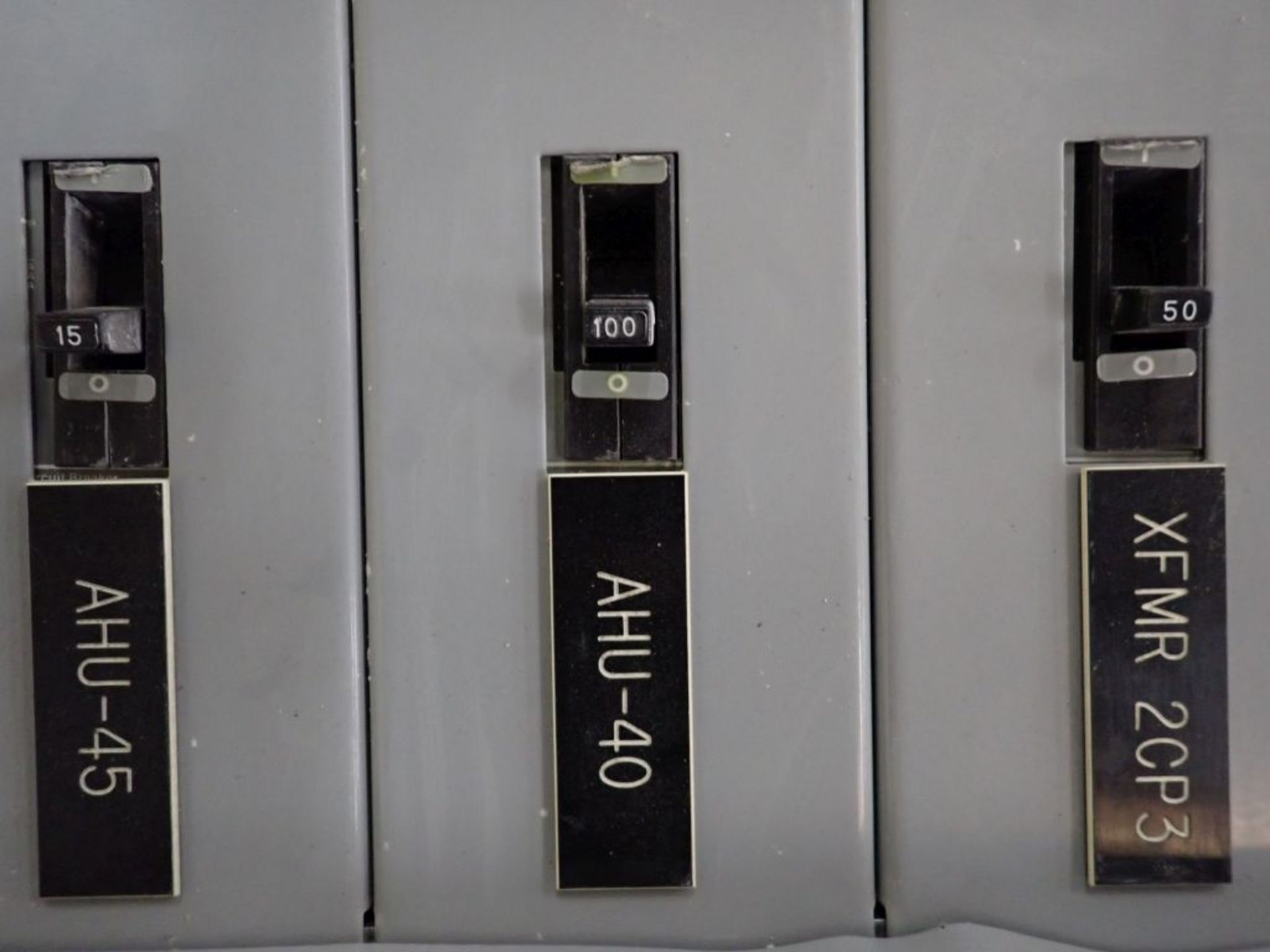 Panelboard, Cat No. S4E60ML400ETS, 400A, 480Y/277V, 3PH, w/Circuit Breakers, (1) 30A Circuit Breaker; (7) 50A Circuit Breakers; (1) 70A Circuit Breaker; (1) 100A Circuit Breaker; (3) 15A Circuit Breaker;