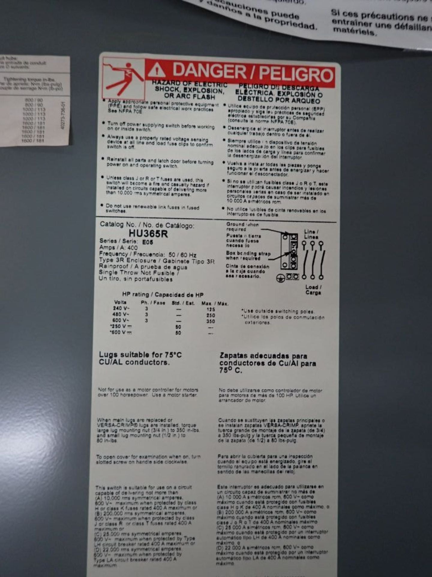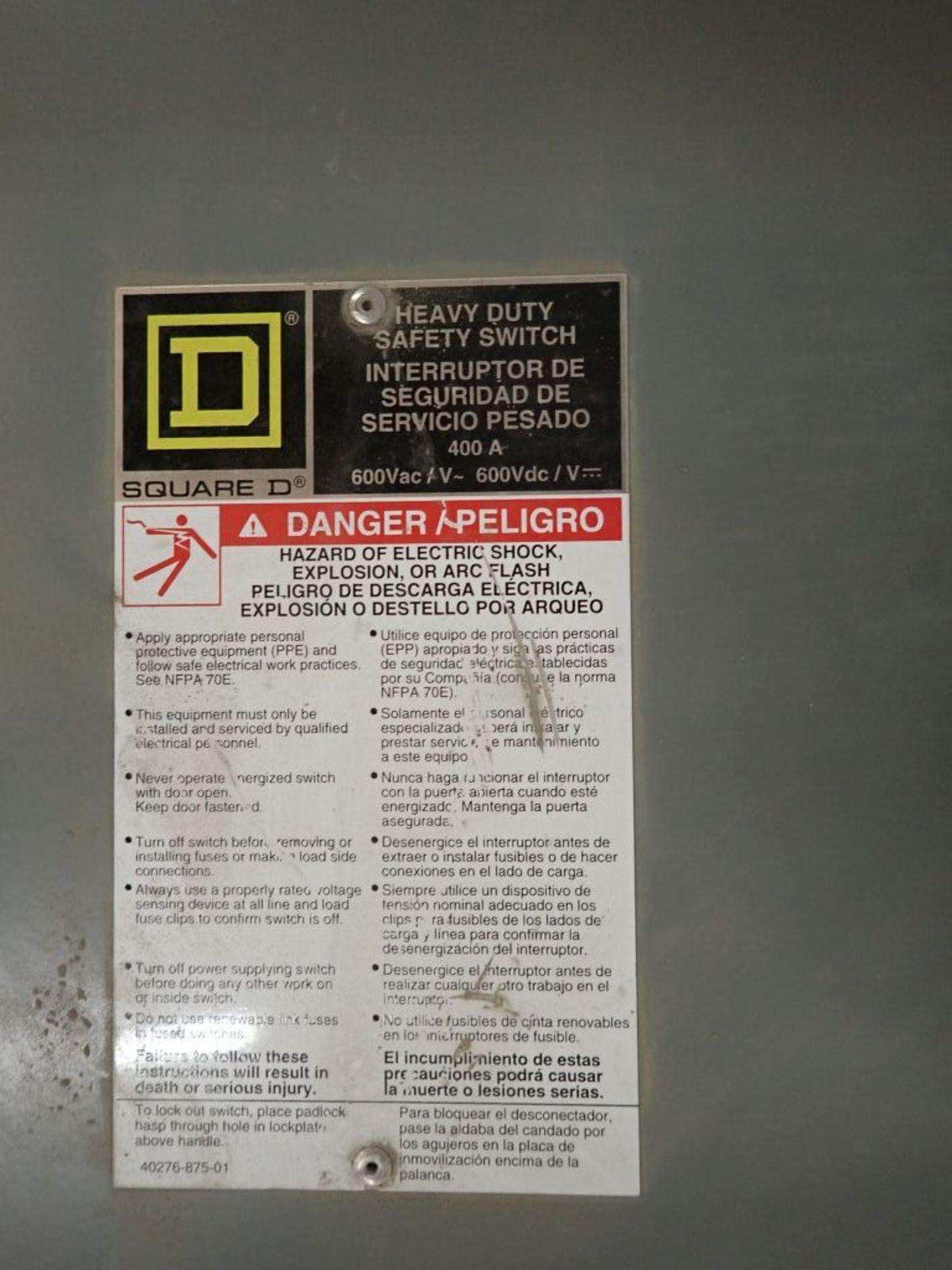 Square D 400A Heavy Duty Safety Switch Cat No. HV365R 600V, Type: 3R Enclosure