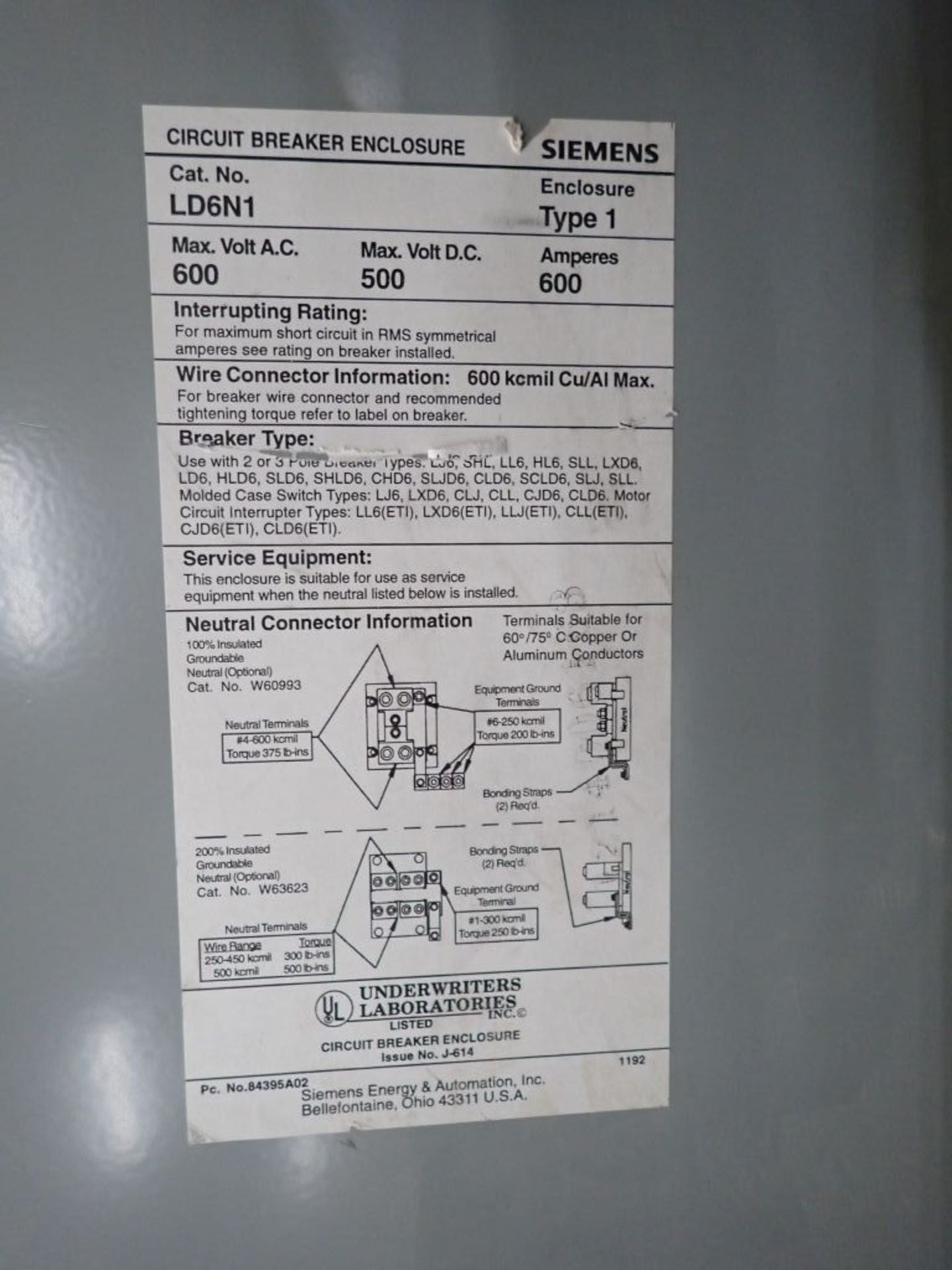 Lot of 2 Siemens 600A Circuit Breaker Enclosures LXD63B600