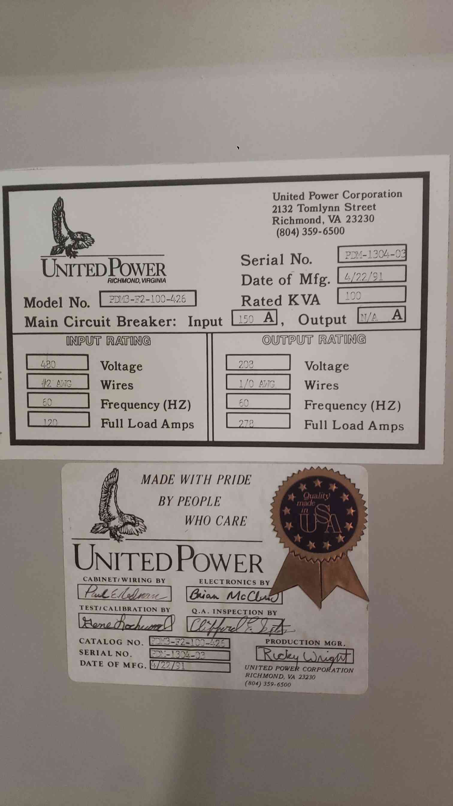 United Power 100KVA 480v x 208V PDU PDM3-F2-100-426 (SKU: 111779)