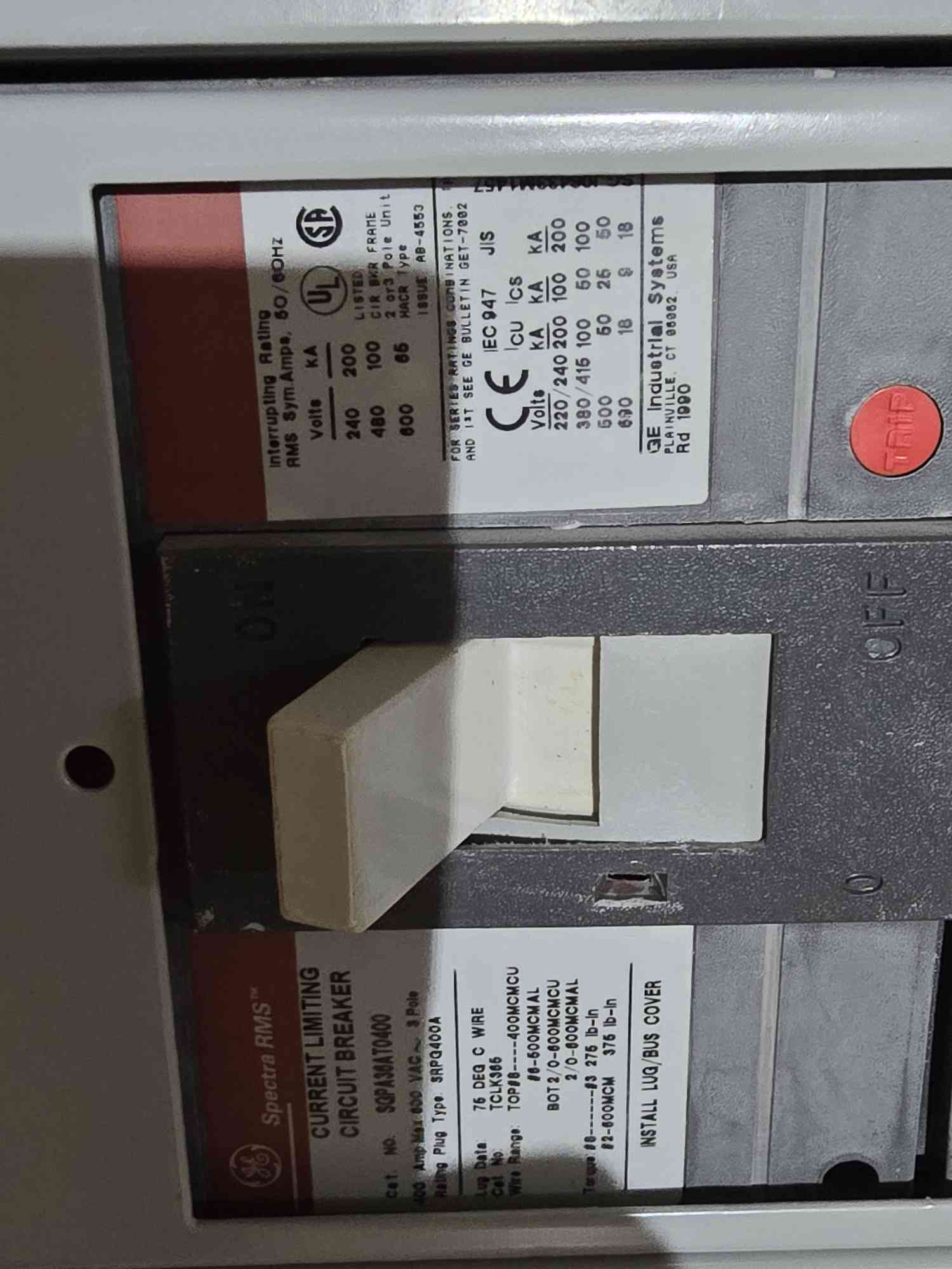 800A GE Spectra Series Panelboard 480V 3PH 4 Breakers Main & Meter - Cell 3 B