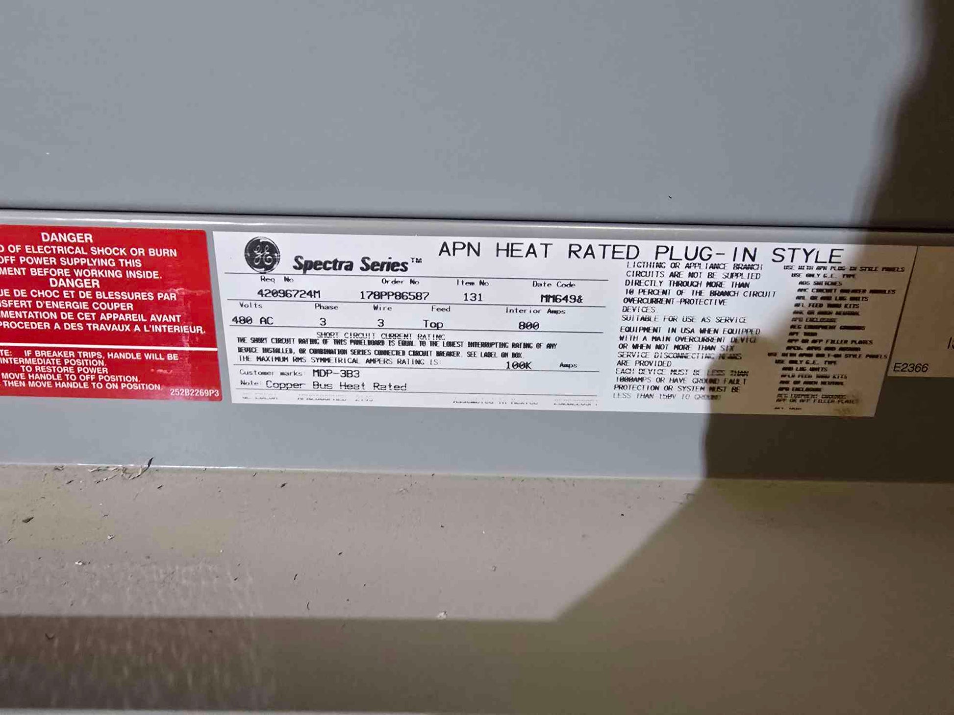 GE Spectra Series 800A 480V 3PH 3W Panelboard 3 Breakers Meter & Main - Cell 3