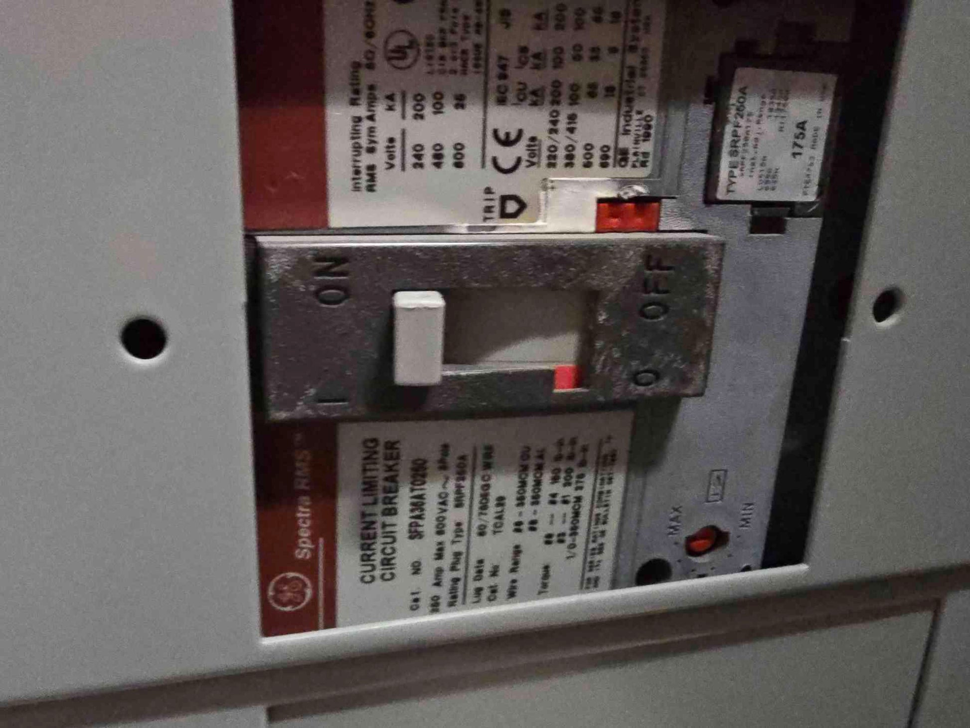 1x GE 250A breaker SFPA36AT0250
