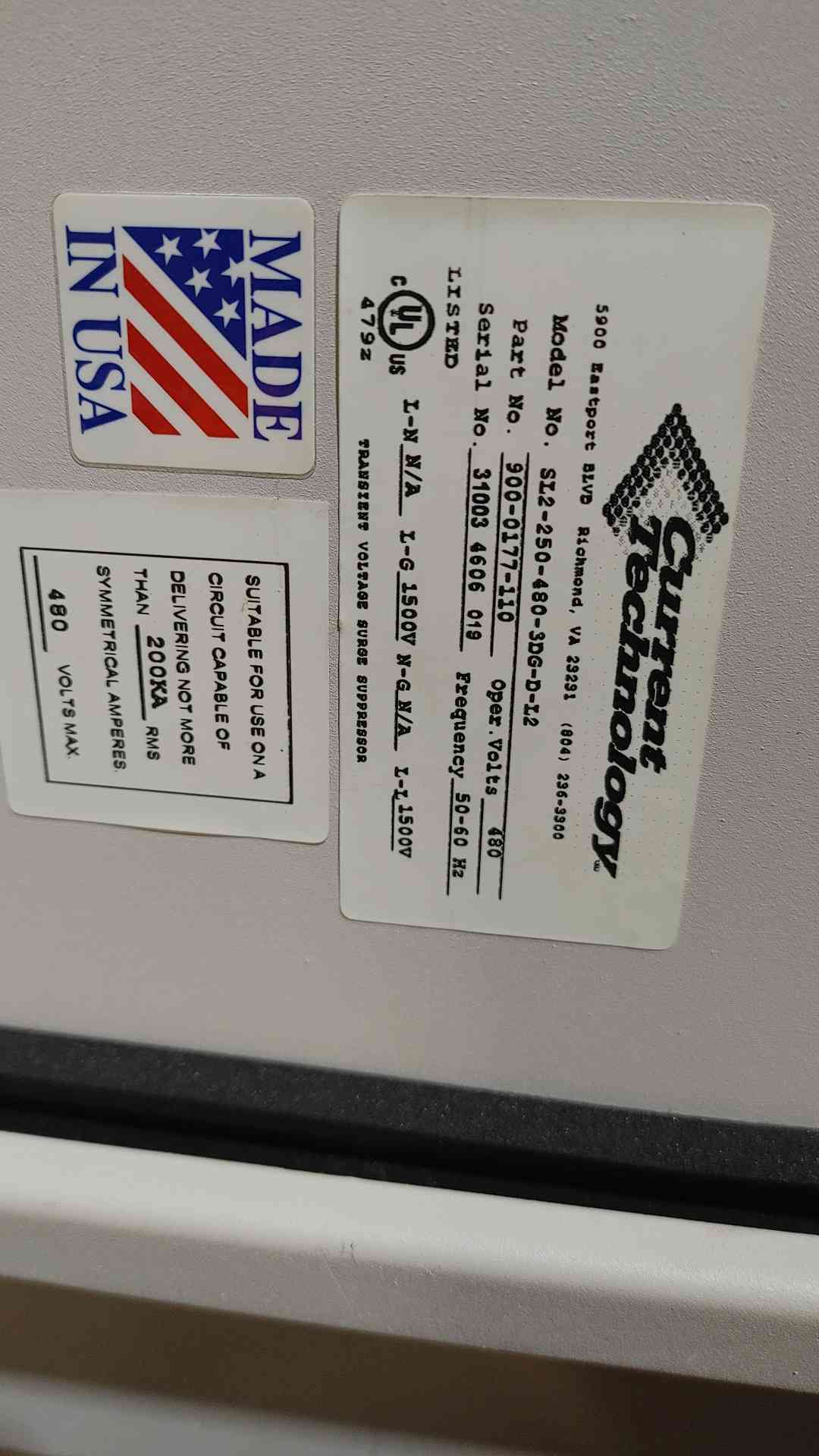 *Local Pickup Does Not Include any Palletization* Current Technology-Secondary Surge Arrester SL2-250-480-3DG-D-L2 480V 3PH (SKU: 111958)