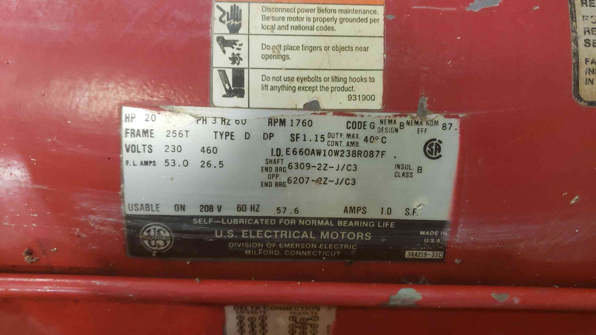 20HP US Electrical Motors 230/460 3PH Motor E660AW10W238R087F (SKU: 111993)