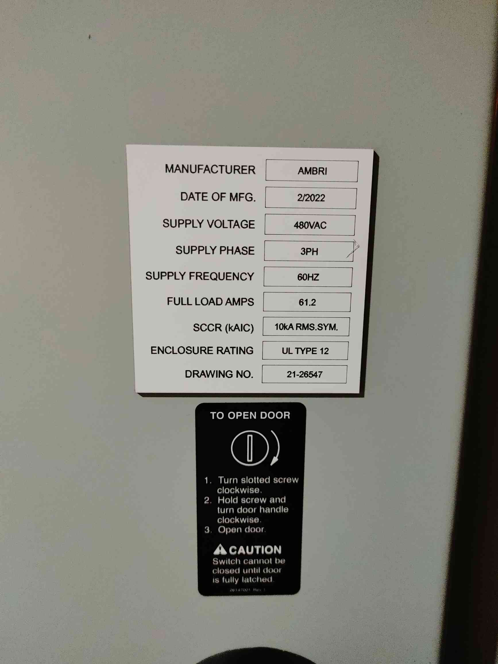 Industrial Batttery Control Panel 61.2A 480V 3PH 60Hz '22(SKU: 112015)