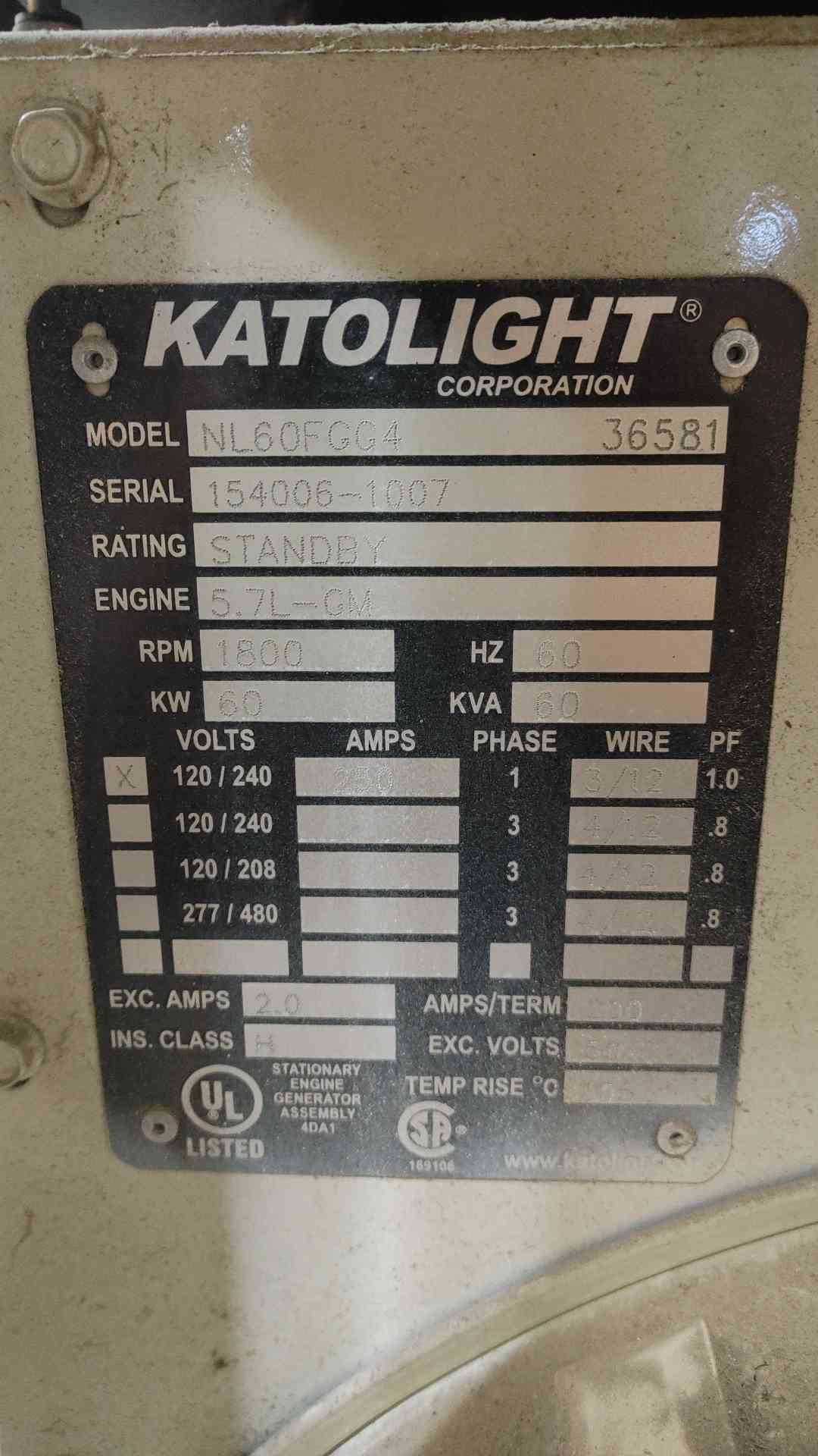60KW Katolight NL60FGG4 120/240 250A 1PH NG/LP 393.3 Hrs. (SKU: 112059)