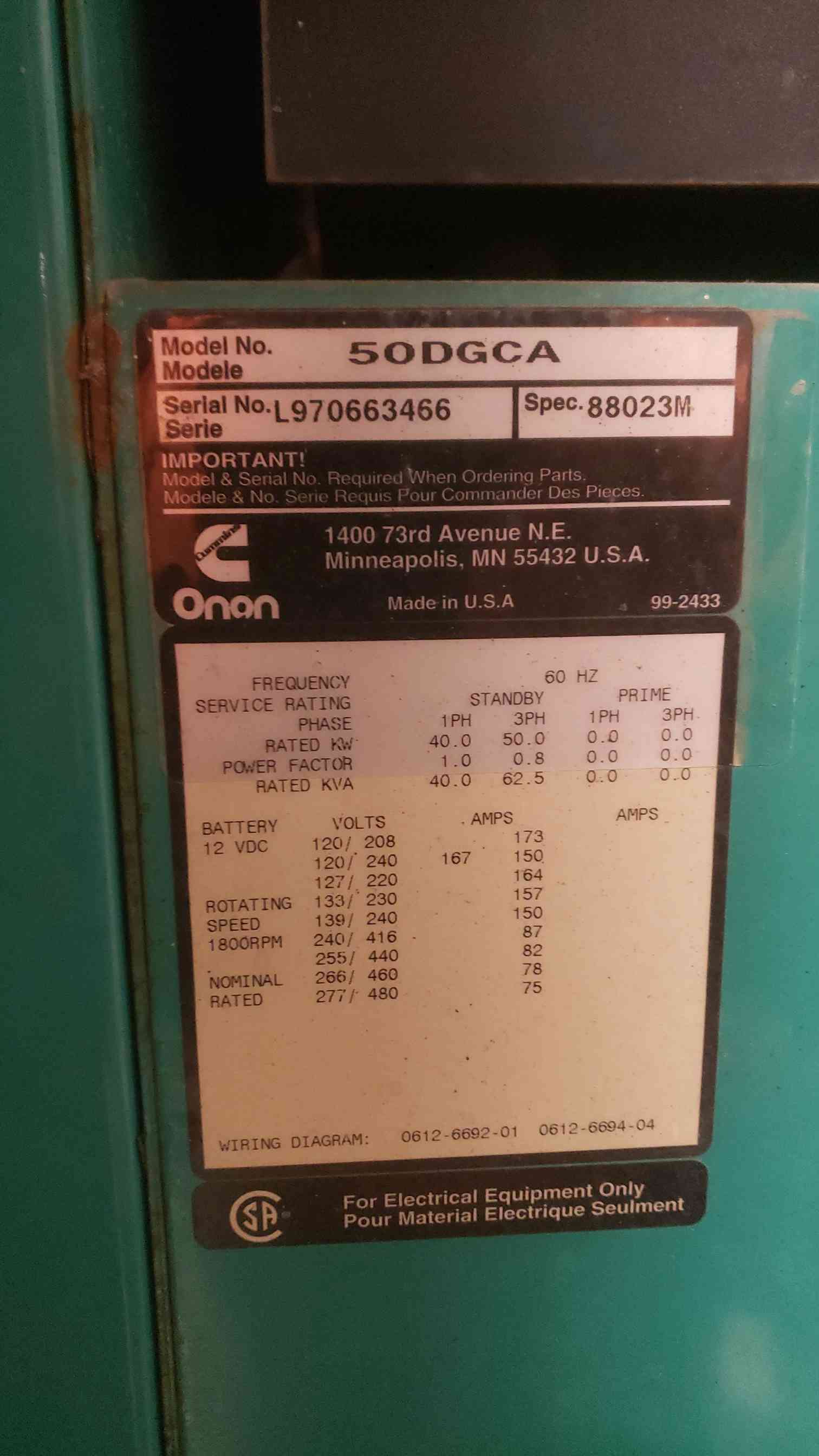 50KW Cummins 4BT 50DGCA 1&3PH Diesel 861 Hrs '97 (SKU: 112085)