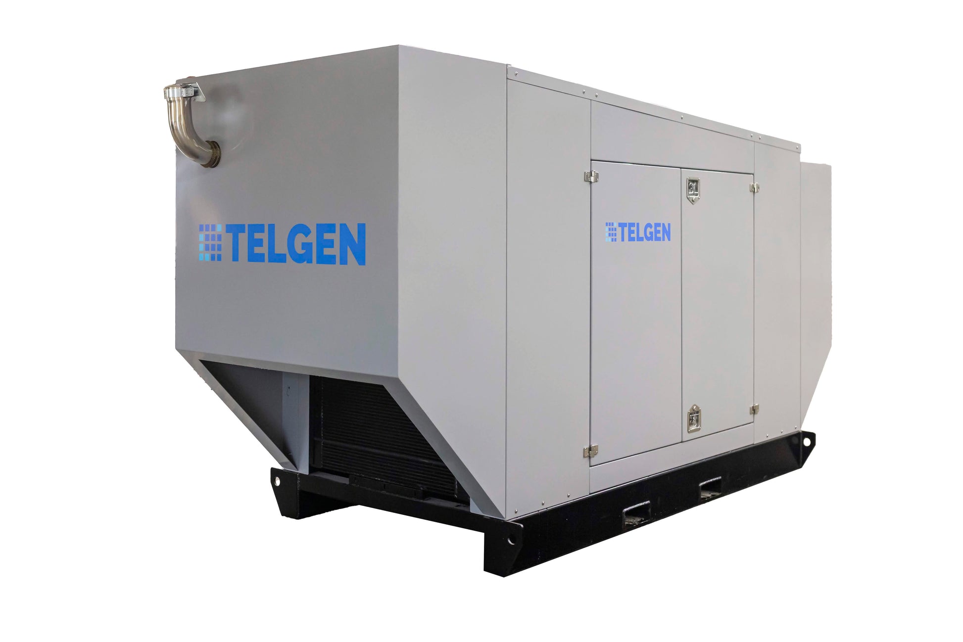 Durability: The unit is housed in a steel enclosure for sound attenuation and weather protection, mounted on a custom tube steel frame.