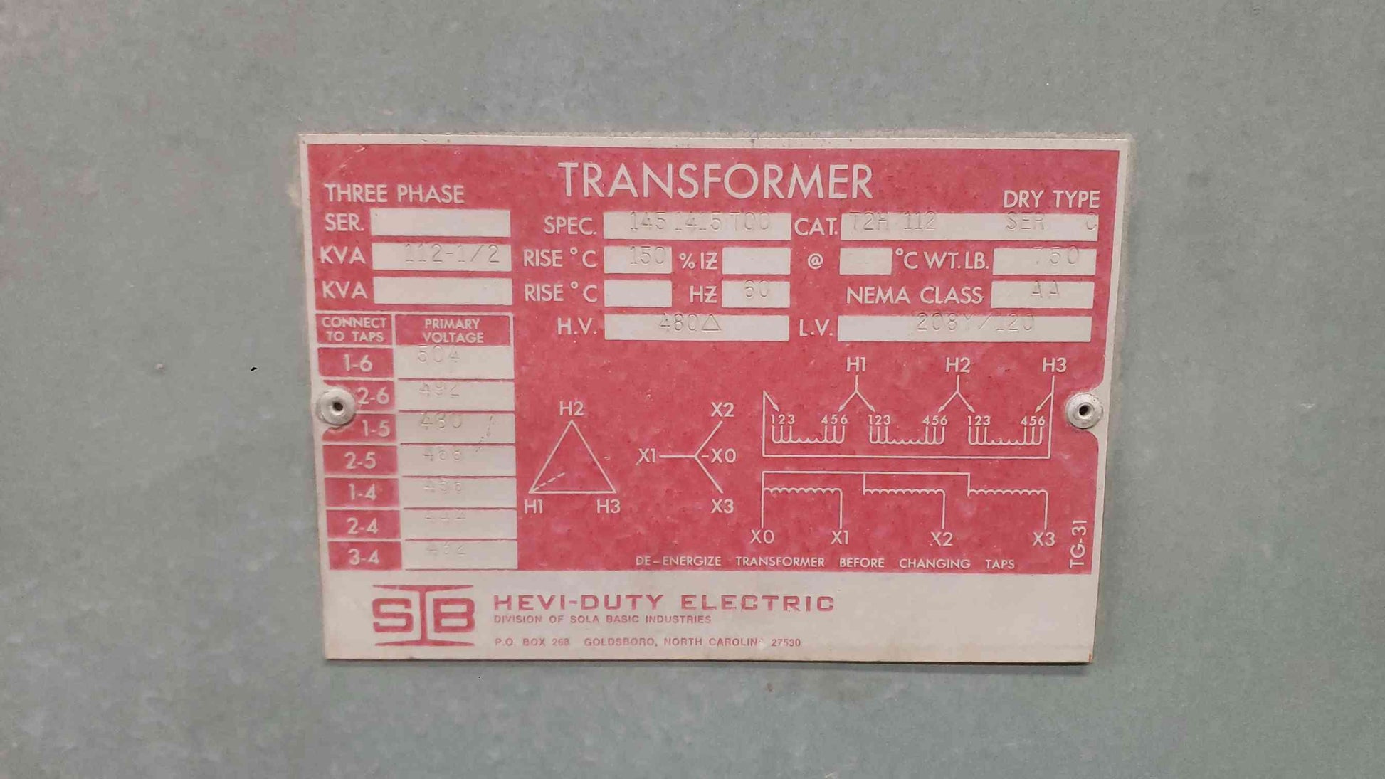 112.5KVA HEVI-DUTY 480v x 208Y/120v Dry Type Transformer T2H112 (SKU: 112144)