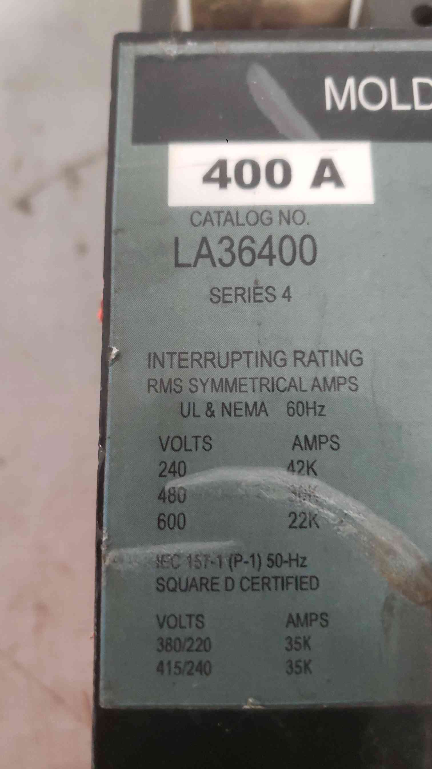 Square D 400A 600VAC 3 Pole Breaker LA36400 (SKU: 112325)