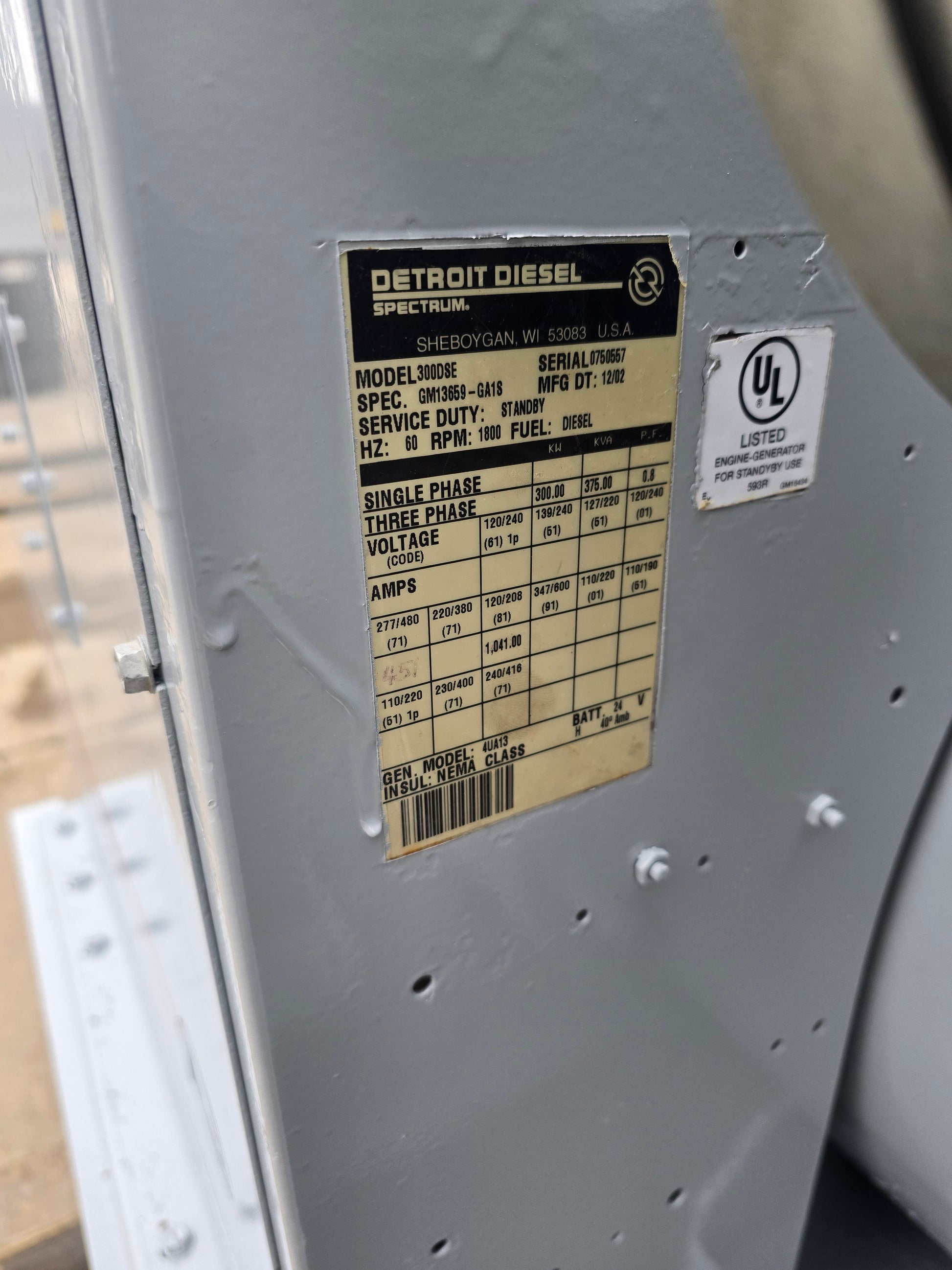 300KW Spectrum 60 Series Detroit Diesel Generator '02 732hrs TESTED