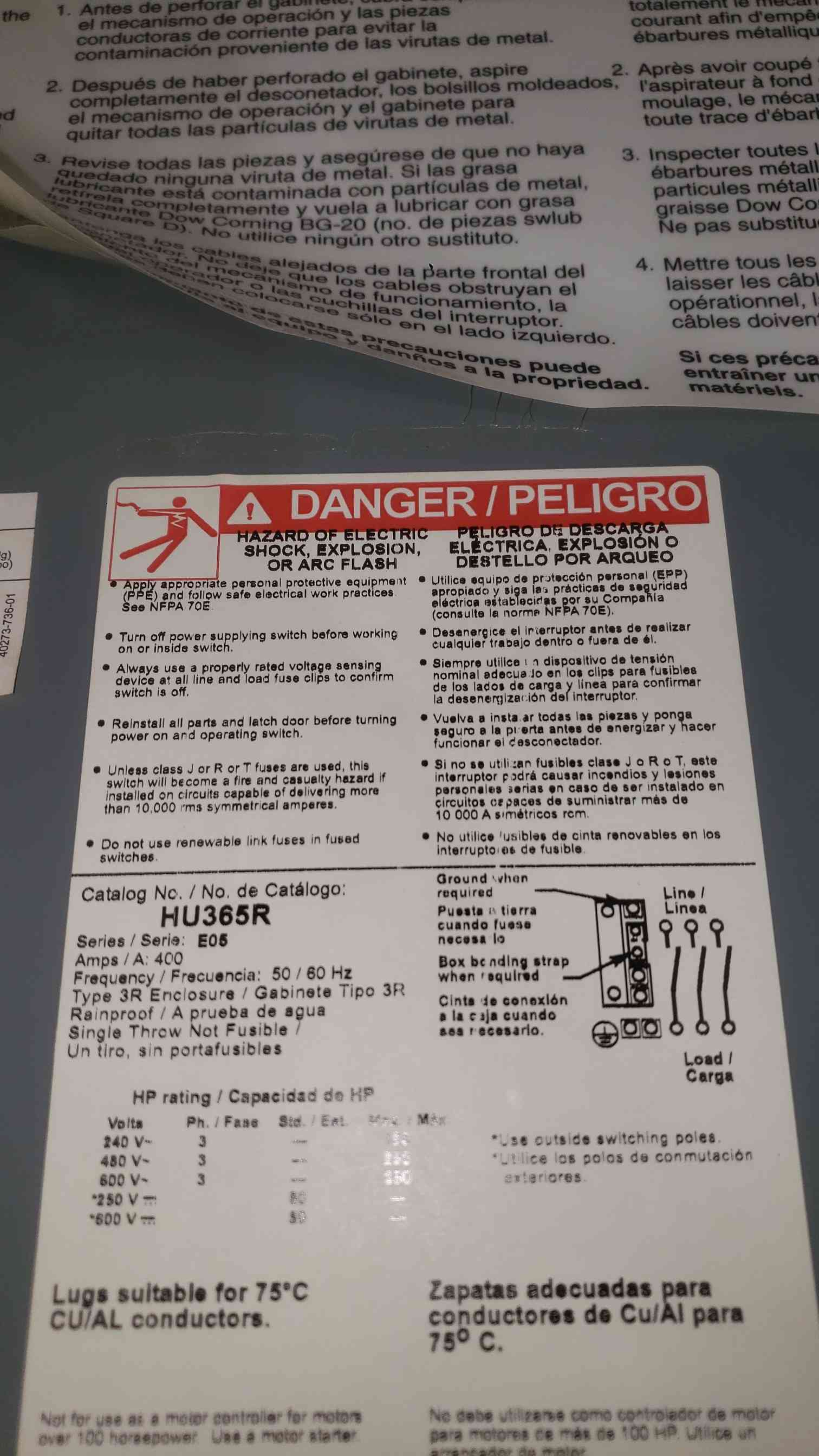 Square D 400A 600VAC Heavy Duty Safety Switch HU365R (SKU: 112427)