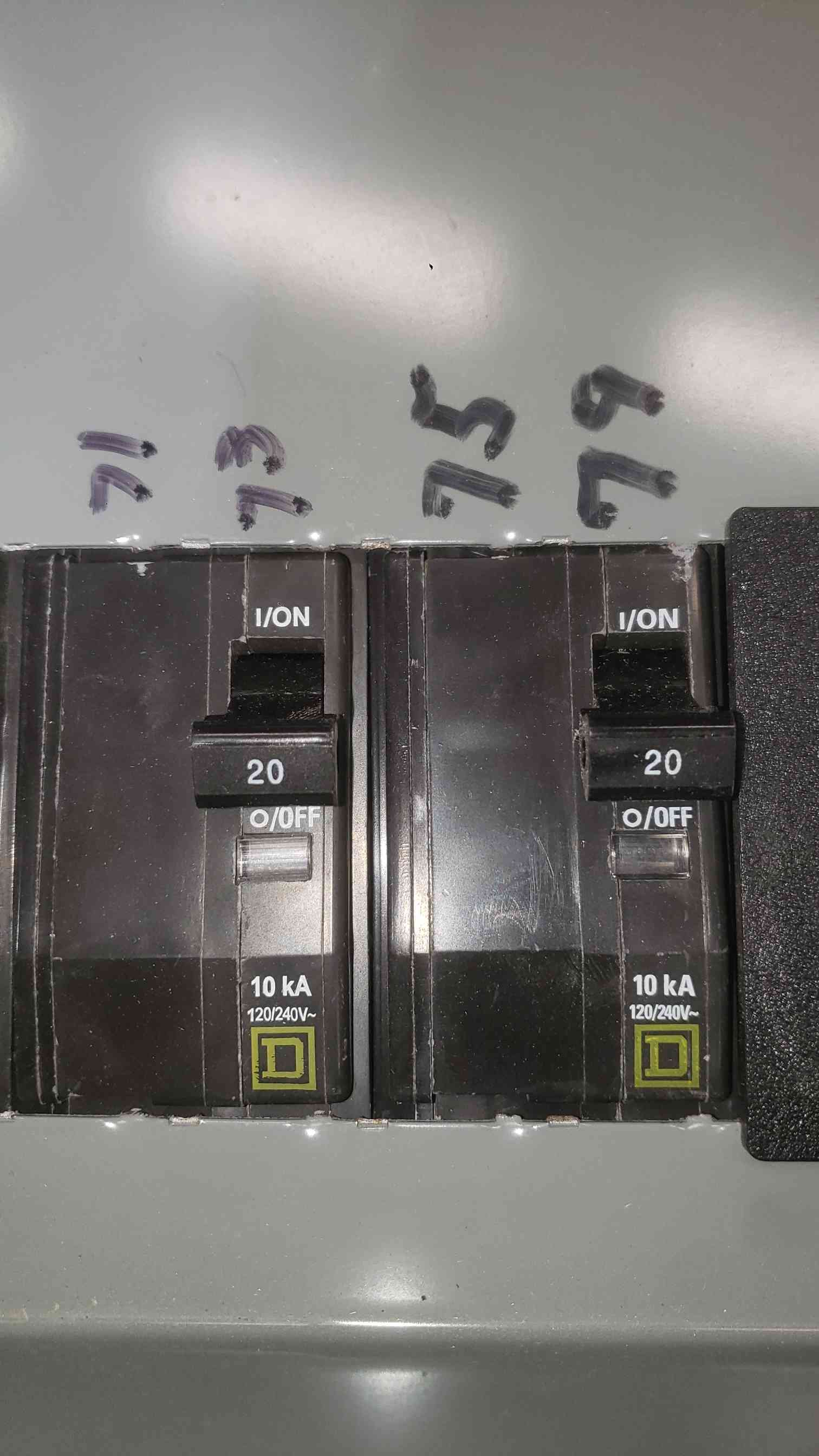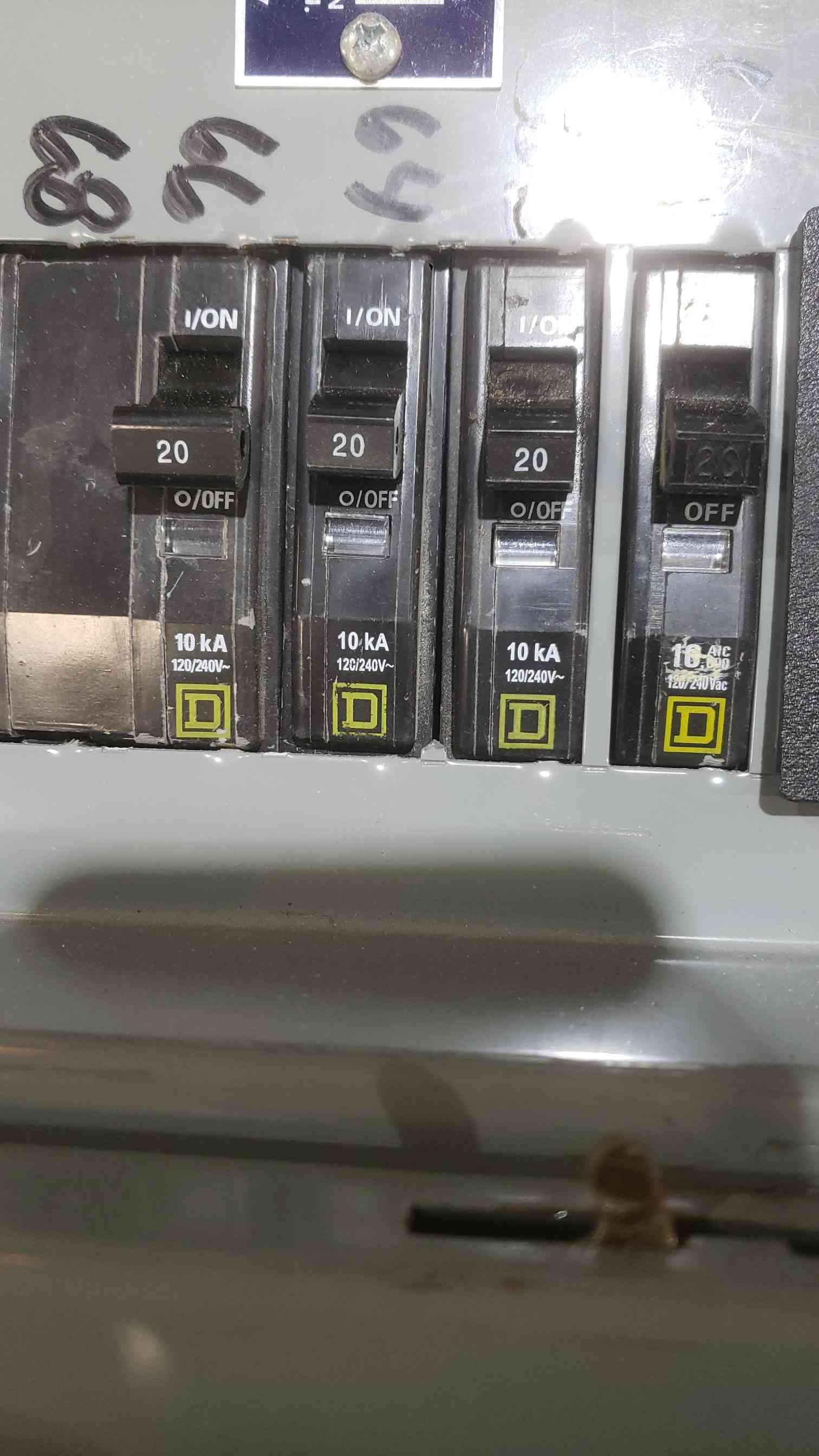4x Square D 20A double pole breakers