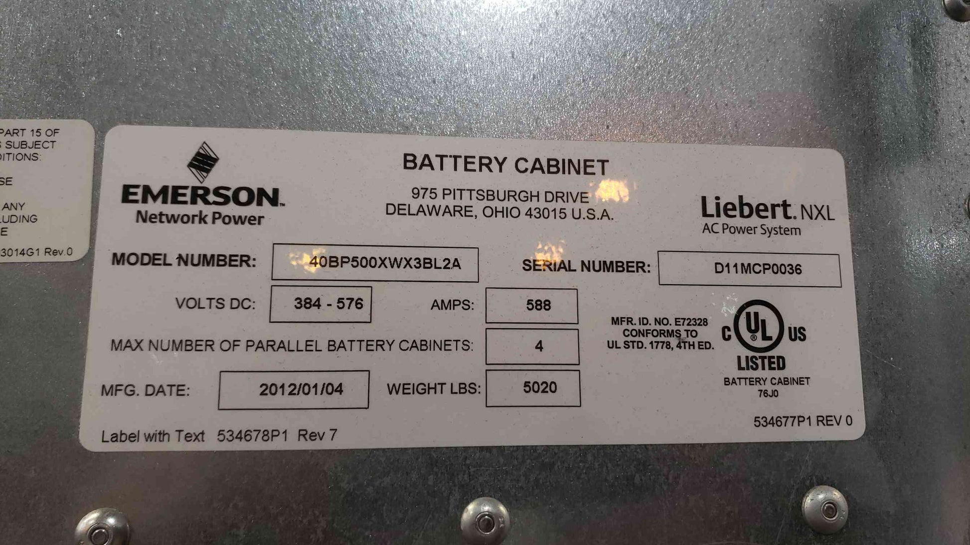 Emerson Liebert NXL 500kVA UPS 450kW 3-Phase 480V System with Battery Cabinets (SKU: 112932)