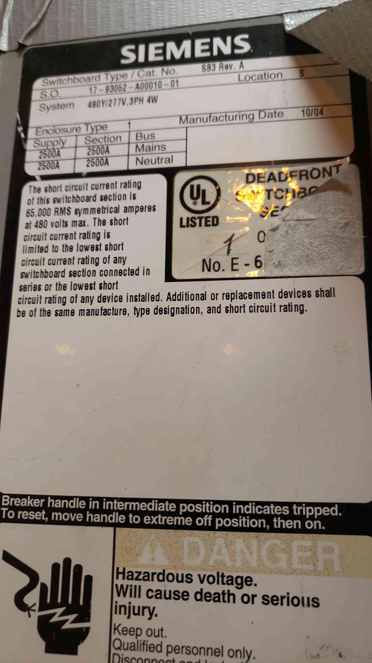 The Siemens 2500A 480Y/277V 3PH Switchboard is a reliable and efficient solution for your electrical distribution needs. Designed for high performance and safety, this switchgear comes equipped with a 2 Breaker Panel to ensure smooth and controlled power flow.