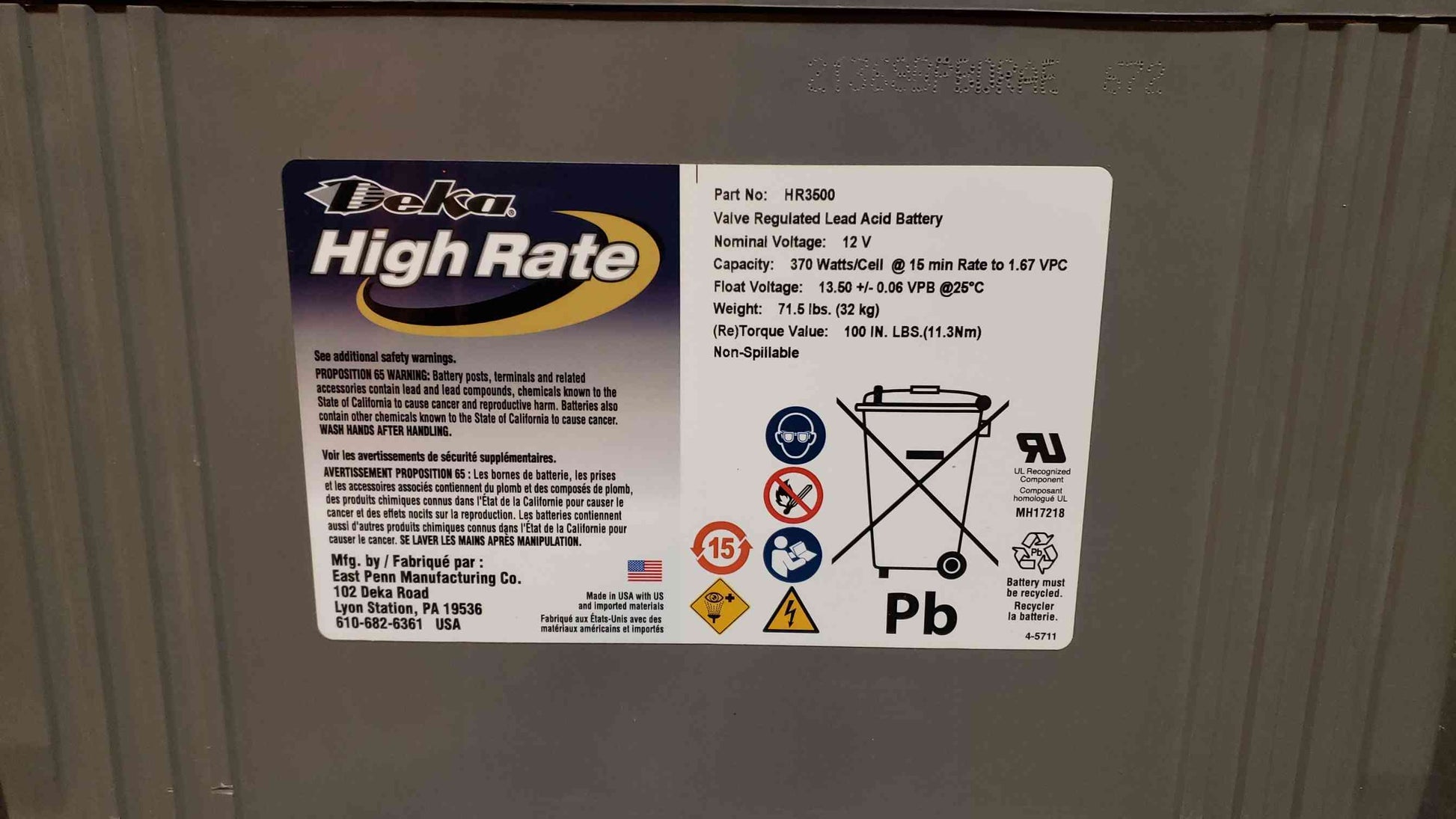 90 Amp Hr Deka High Rate Lead Acid Battery HR3500 2022 TESTED (SKU: 3455AA
