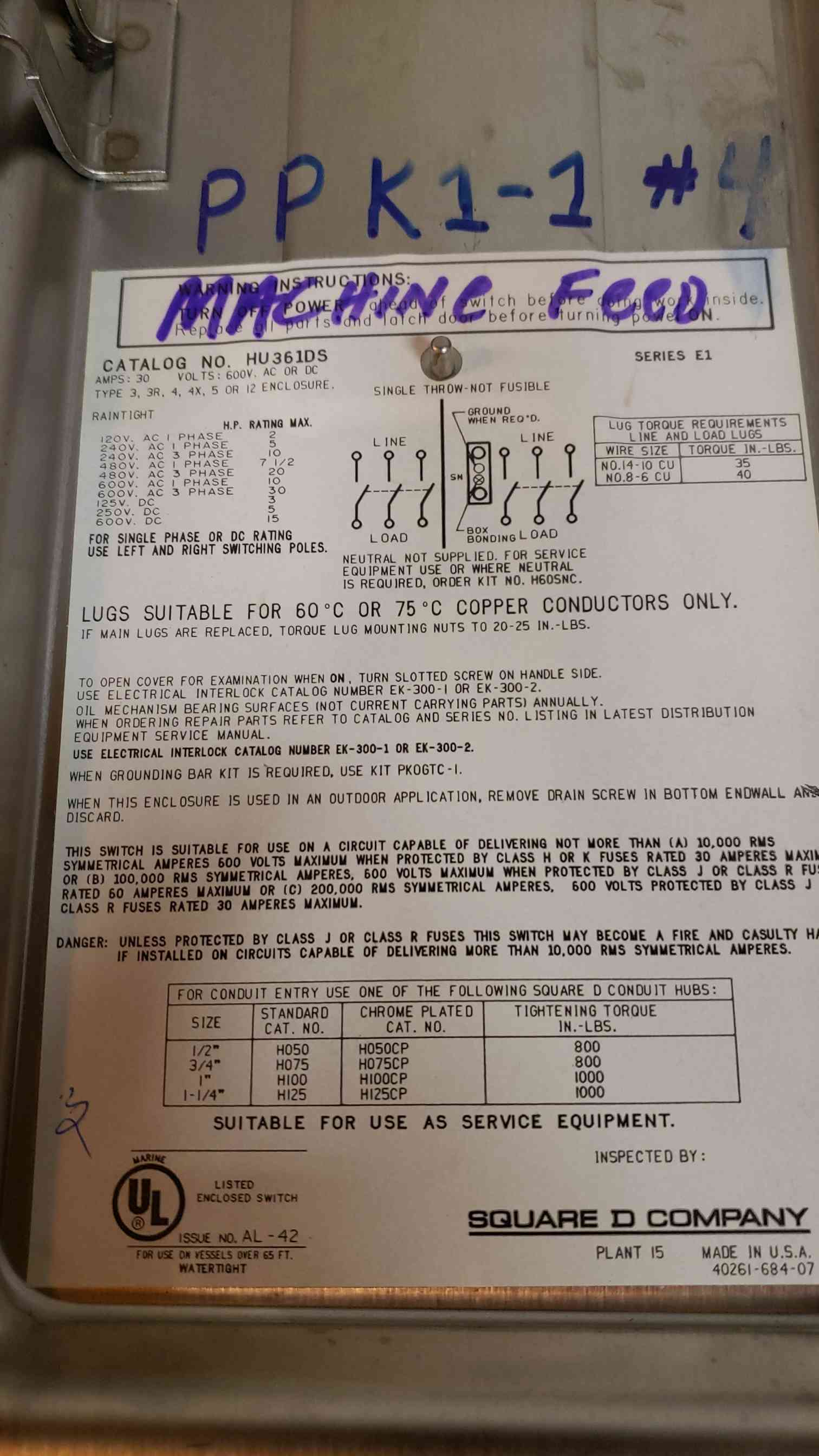 30A Square D Heavy Duty Safety Switch HU361DS Stainless Steel (SKU: 3921AA)(3921AA)