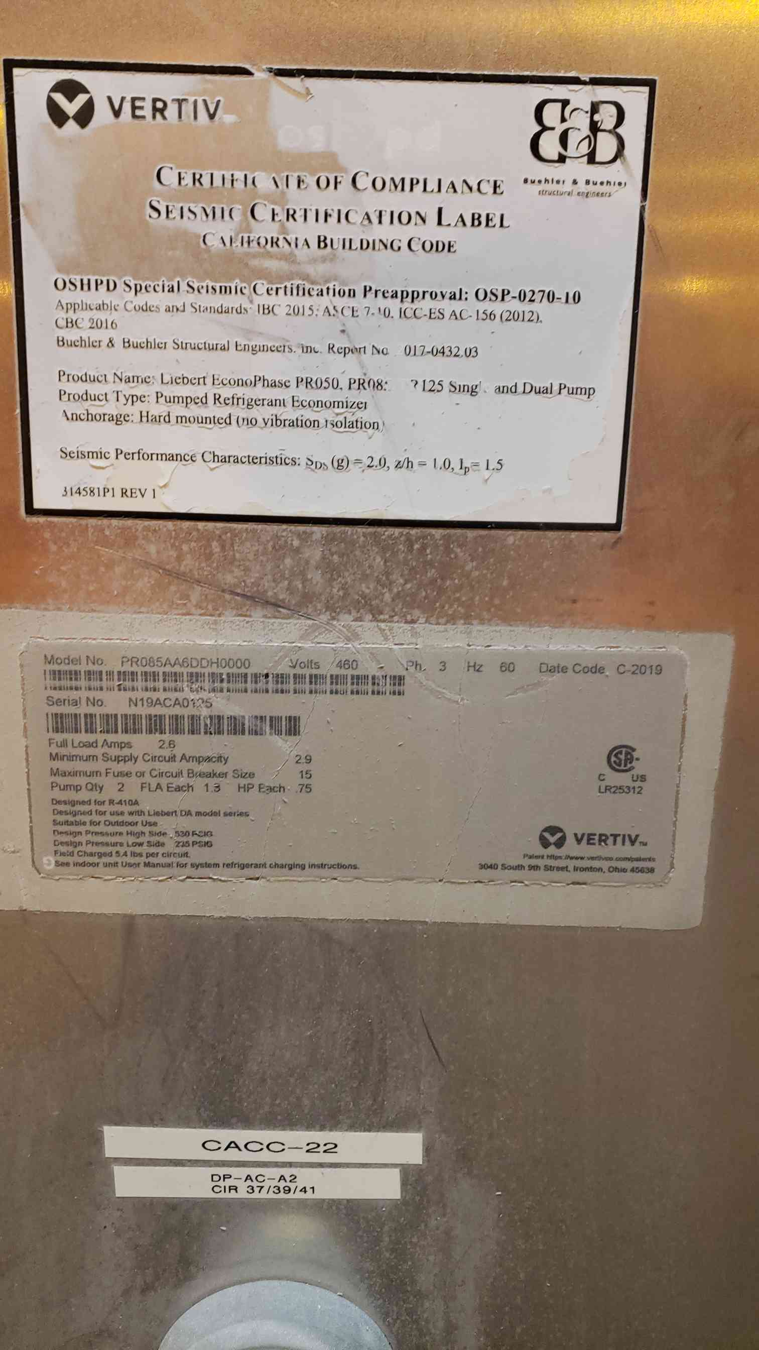 Liebert Pump Package 460V 3PH PR085AA6DDH0000 Economizer (SKU: 4511AA)