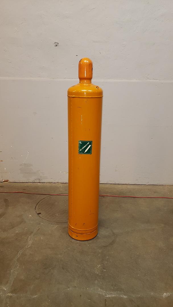 Store your gas cylinders in style with this vibrant orange metal storage tank, measuring 10x10x56. Perfectly designed for fuel and gas, it ensures your cylinders are secured and organized.