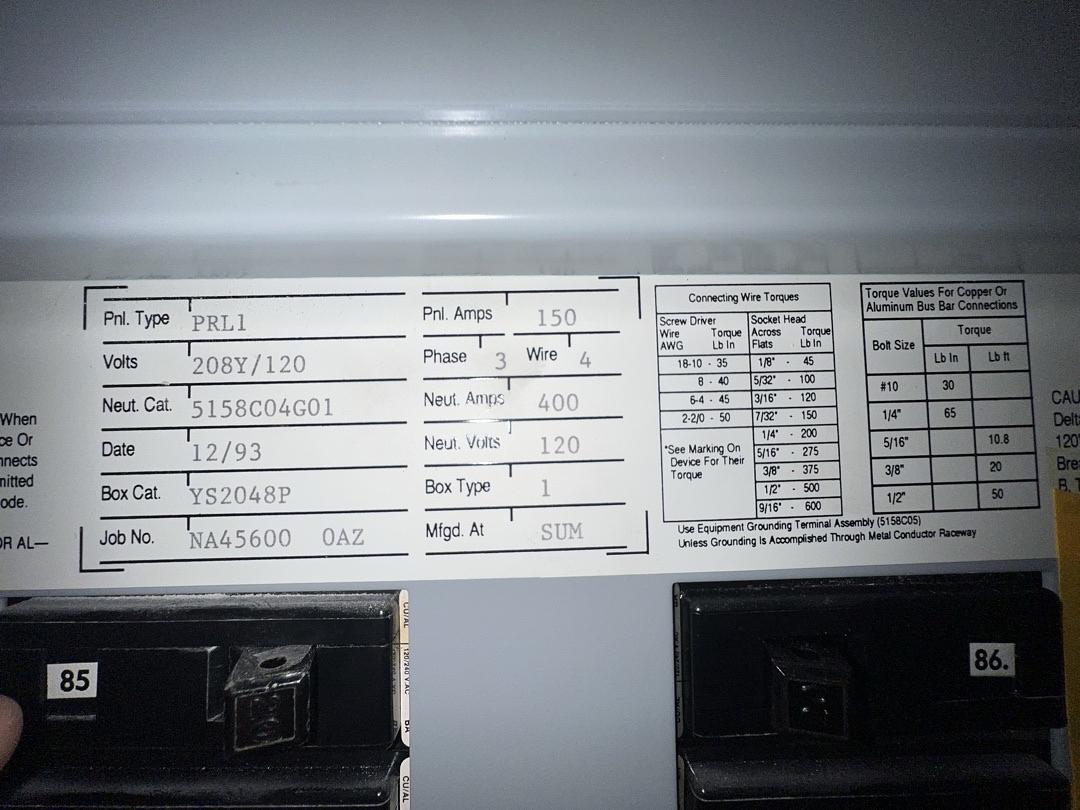 PRL1A 150A Panelboard w/Main 42 CKT 120/208V Neut. 400A (SKU: 13299)(S6LLST13299)